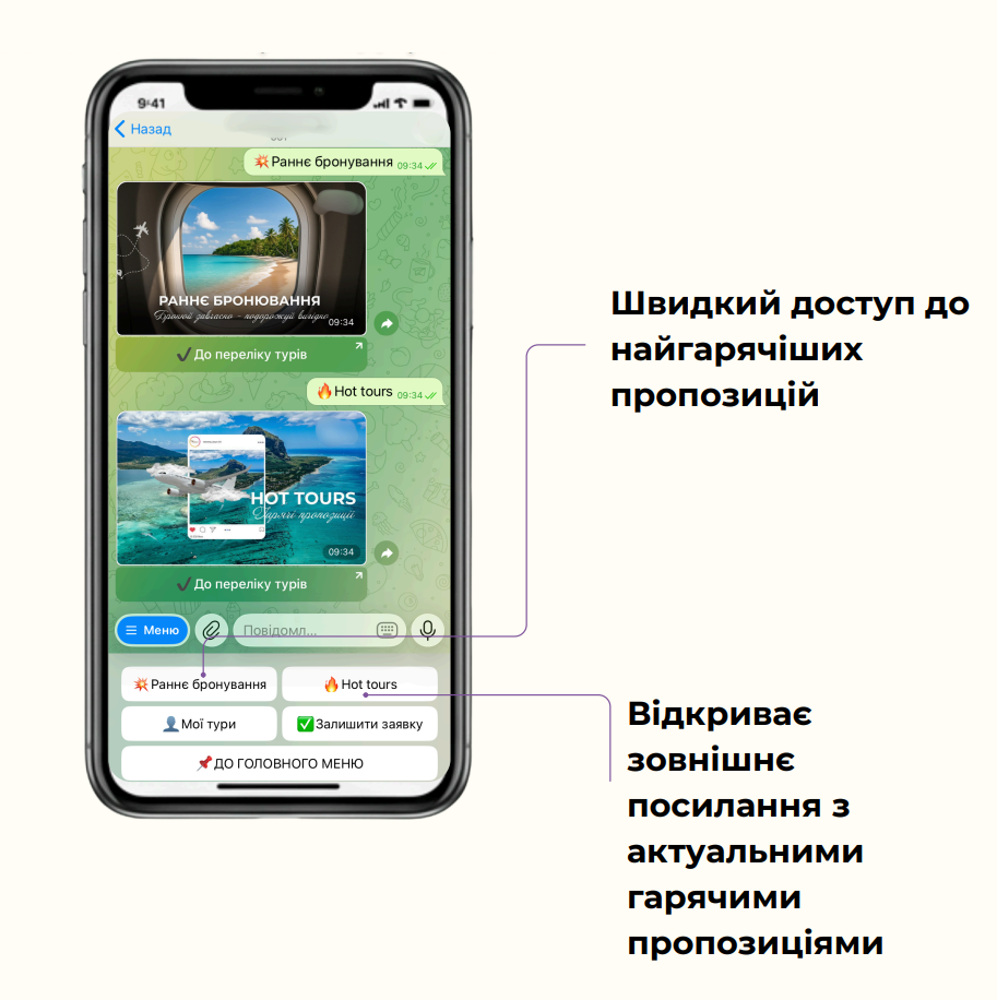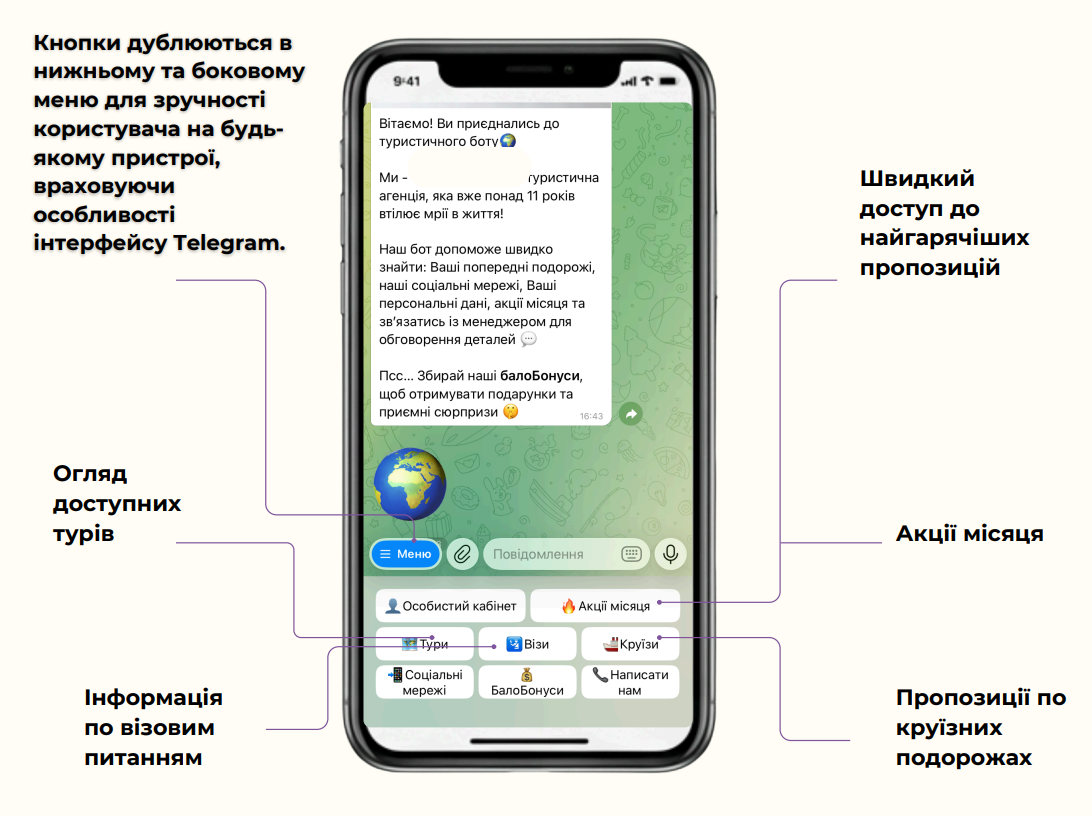 New tourists can immediately see all key sections and get information without waiting for a manager's response: