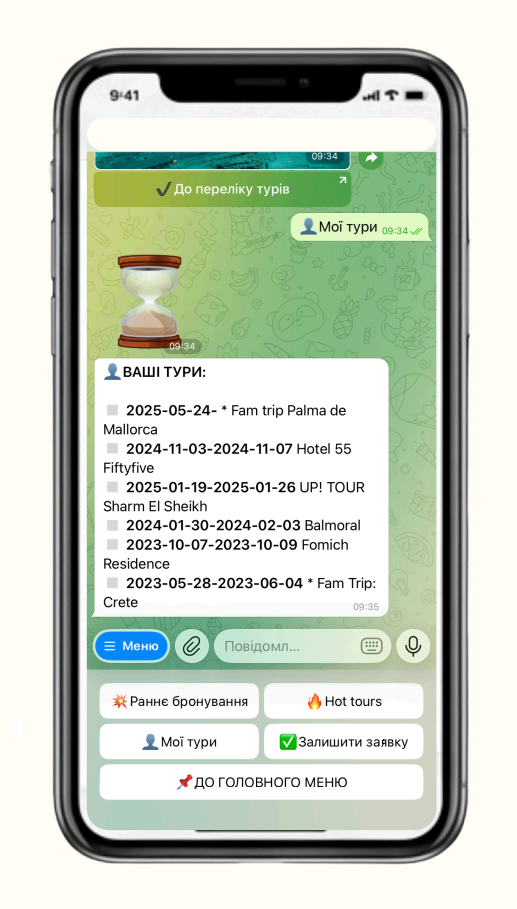 The "My Tours" section automatically pulls data from All-Inclusive CRM, allowing tourists to view their travel history, bonuses, and much more at any time: